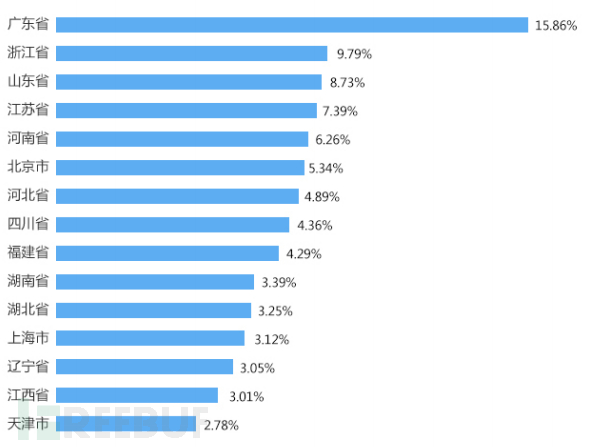 · 来源于国内的DDoS攻击,排名最靠前三个省份分别是广东、浙江和山东。
