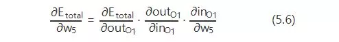 所以,看下图,总误差的大小首先受输出层神经元O1的输出影响,继续反推,O1的输出受它自己的输入的影响,而它自己的输入会受到w5的影响。这就是连锁反应,从结果找根因。